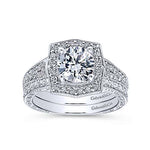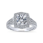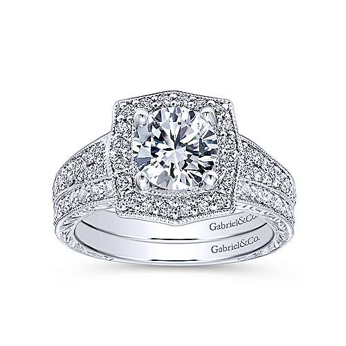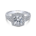 Gabriel & Co. Theresa ER10191W44JJ – Vintage Inspired 14K White Gold Round Halo Diamond Engagement Ring
