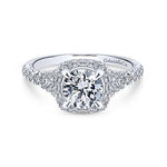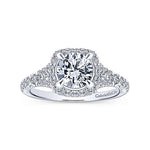 Gabriel & Co. Thyme ER12813R4W44JJ – 14K White Gold Cushion Halo Round Diamond Engagement Ring