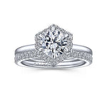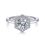 Gabriel & Co. Valor ER14788R4W44JJ – 14K White Gold Hexagonal Halo Round Diamond Engagement Ring