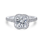 Gabriel & Co. Warner ER14412R4W44JJ – 14K White Gold Cushion Halo Round Diamond Engagement Ring