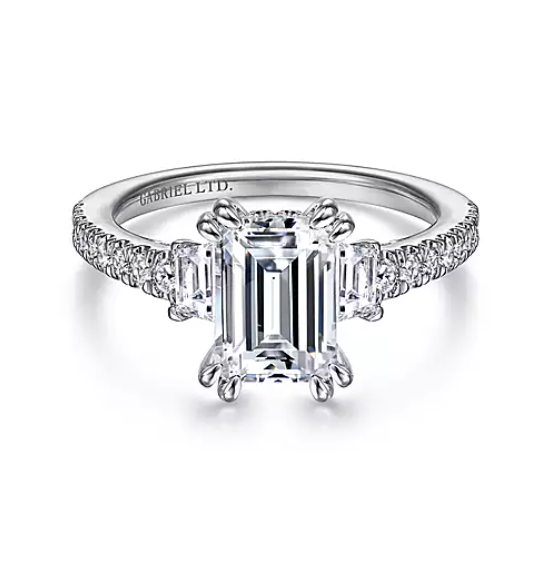 Wednesday - 18K White Gold Emerald Cut Three Stone Diamond Engagement Ring