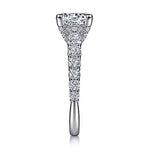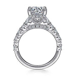 The Gabriel & Co. Winslet engagement ring (ER15344R8W83JJ) is a luxurious design crafted in 18K white gold. Featuring a brilliant round center stone (sold separately), the ring is enhanced with pavé-set diamonds along the shank for added sparkle and sophistication. With its timeless silhouette and heirloom-inspired detailing, the Winslet ring is perfect for brides who desire classic romance with modern elegance.
