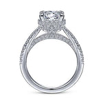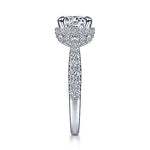 Embrace timeless elegance with the Yelena engagement ring by Gabriel & Co. This vintage-inspired masterpiece is crafted in luxurious 18K white gold and features a hidden halo design that enhances the brilliance of your chosen round center stone. With delicate milgrain detailing and a romantic silhouette, Yelena is a tribute to enduring love and refined craftsmanship. Center stone sold separately.