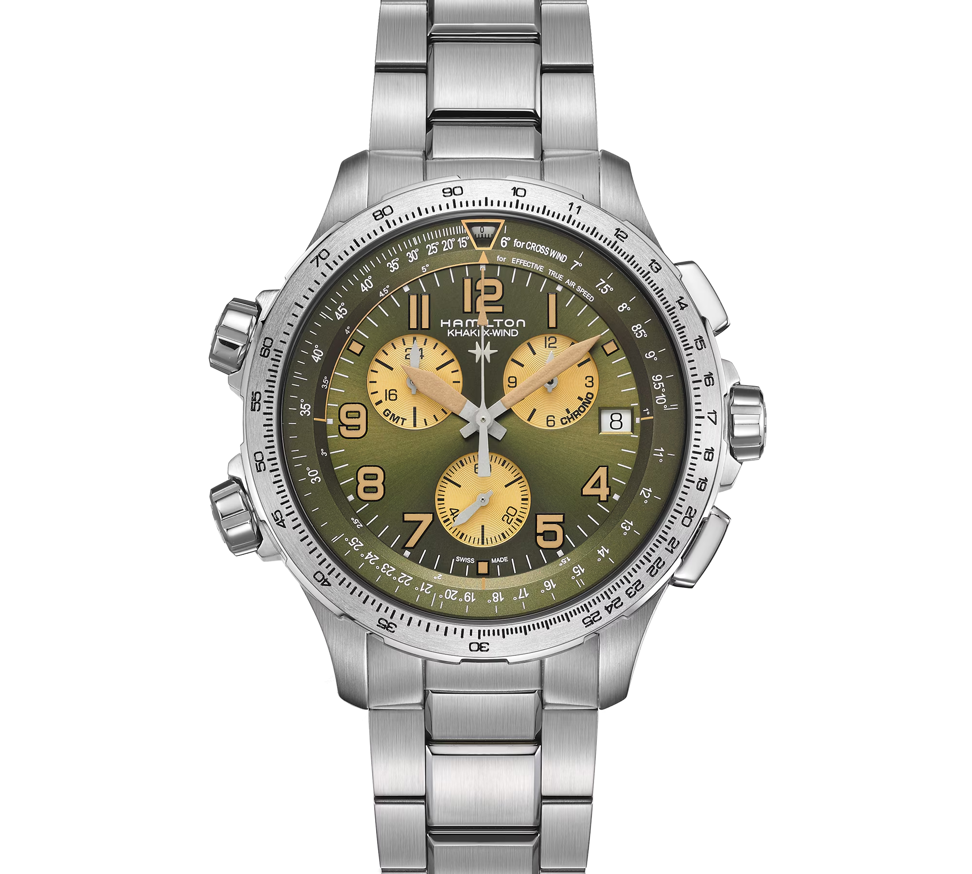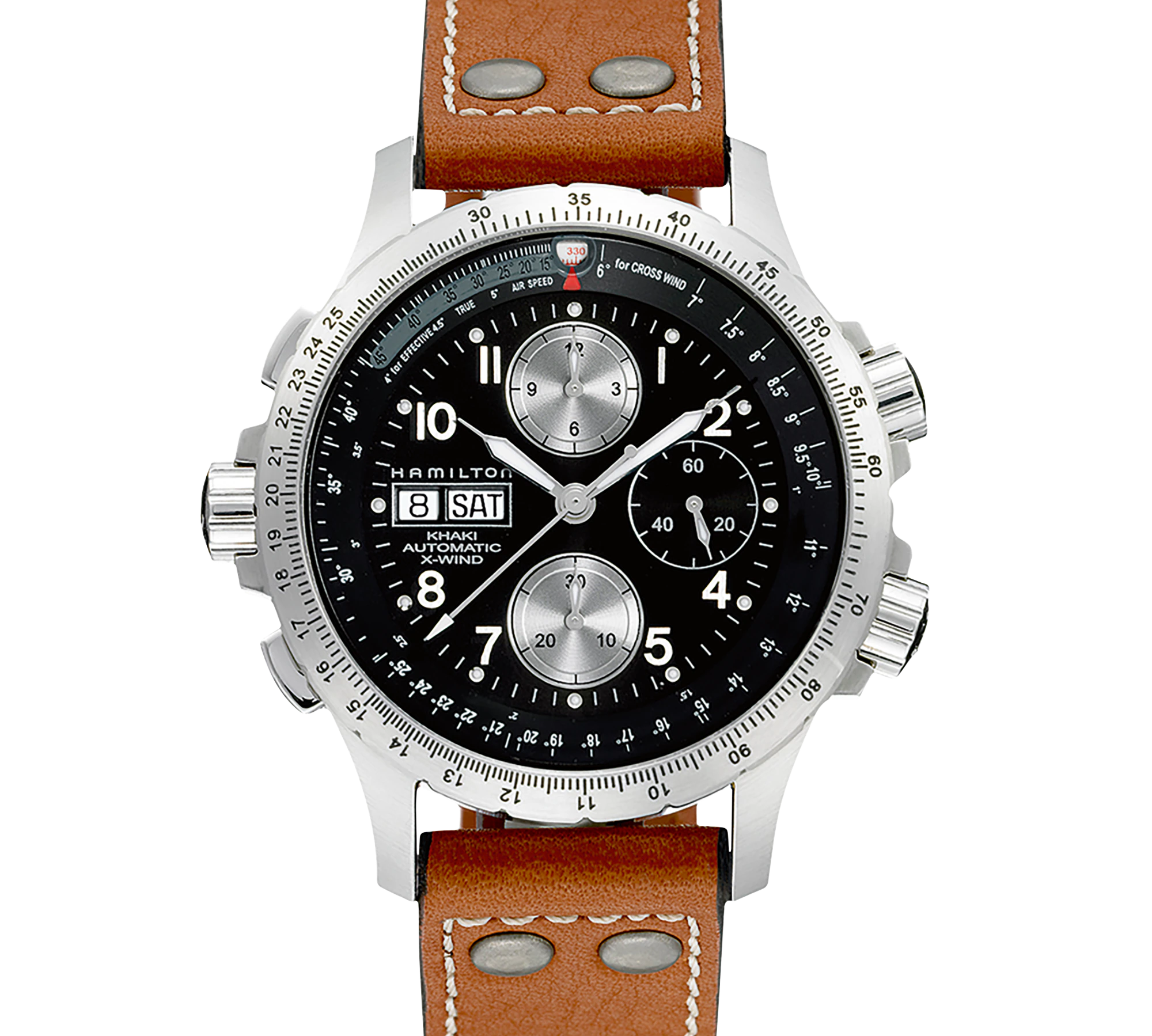 Khaki Aviation honors Hamilton's aviation roots with pilot chronographs, GMT functions, and bold dials up to 46mm. Designed for professionals, these watches include drift-angle calculators on models like X-Wind and precise ETA movements for high-altitude accuracy. Their retro flair meets modern tech, making them top choices for aviation enthusiasts.
