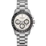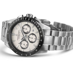 Made for those who valuestyle and precision, the Jazzmaster Performer line is resilient enough for an adventurous weekend and sophisticated enough for black tie events. Powered by the H-31 automatic chronograph movement with 60 hours power reserve, the Jazzmaster Performer Automatic Chronograph features a 42mm stainless steel case accented by a classic white dial, contrasting black bezel and an assertive stainless steel bracelet.