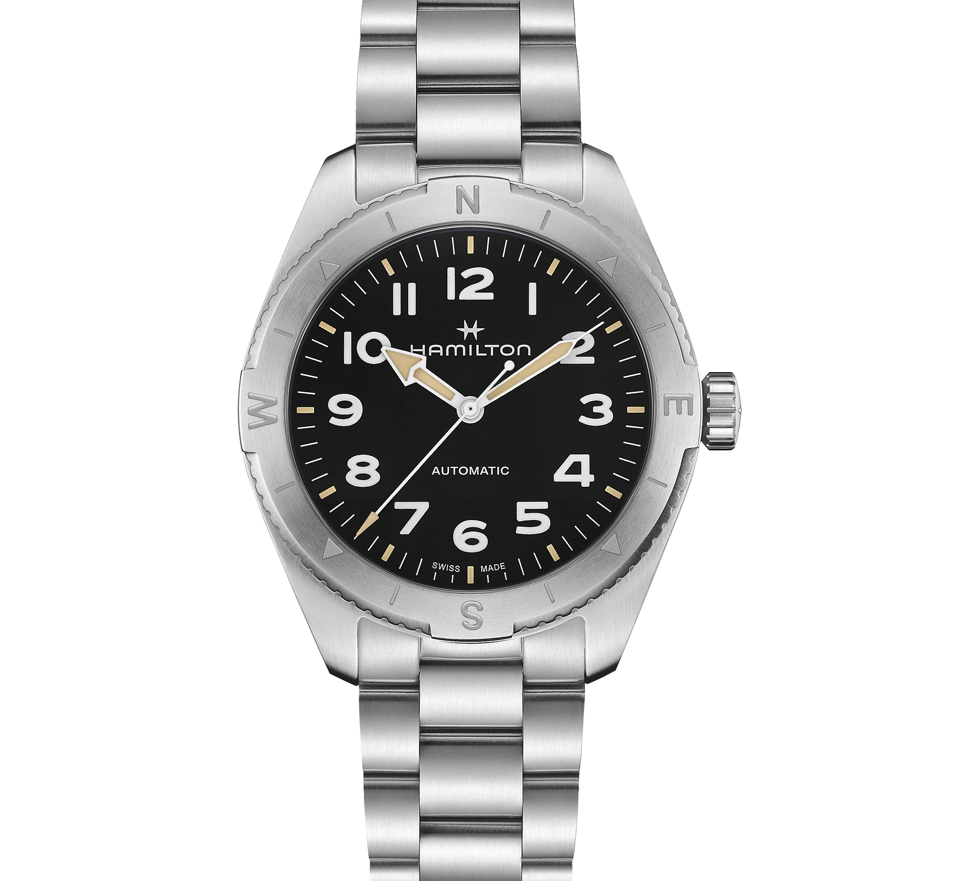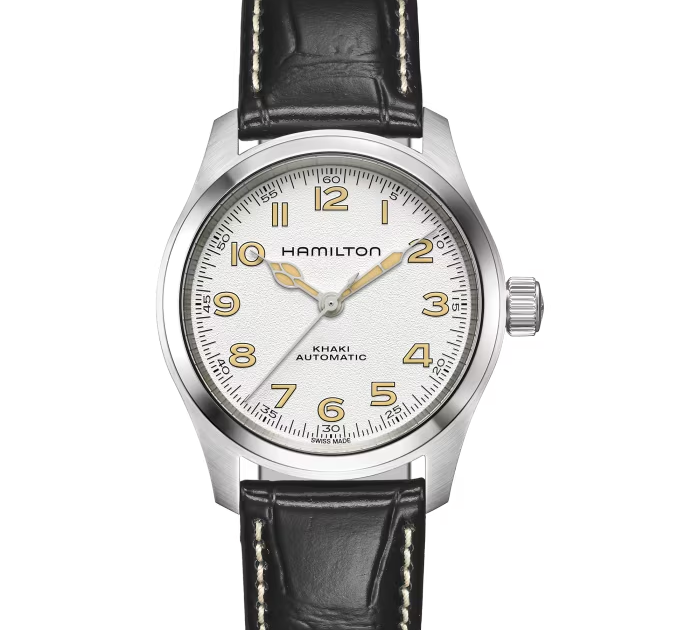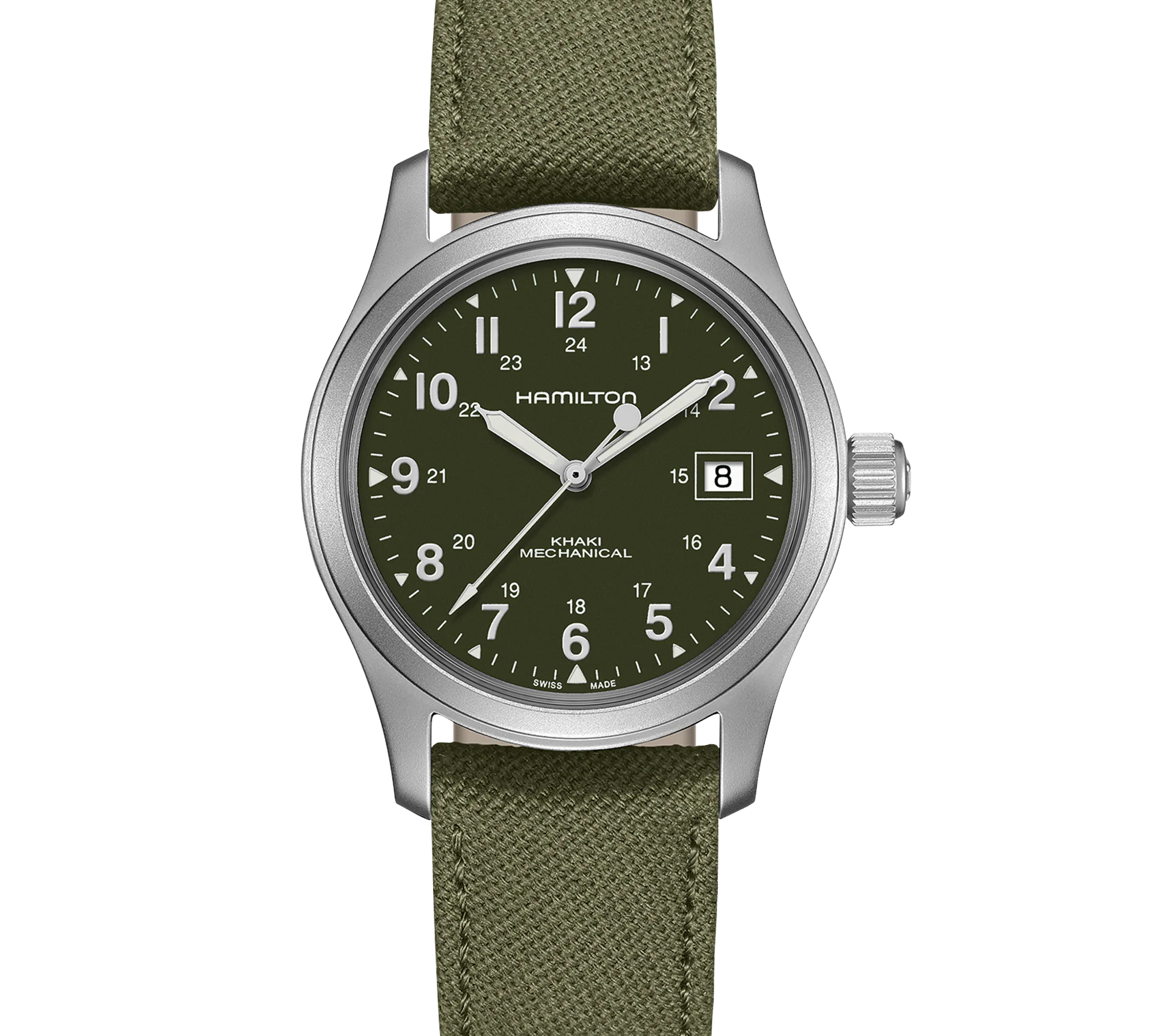 Rugged military-inspired field watches define the Khaki Field collection, built for outdoor durability with stainless steel cases, sapphire crystals, and automatic movements. These tactical timepieces feature easy-read dials and water resistance up to 100m, ideal for explorers seeking reliable performance in any terrain. Perfect for everyday wear or missions, they embody Hamilton's legacy in army-style watches.