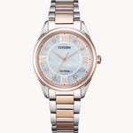 Citizen Eco-Drive Arezzo EM0876-51D – Two-Tone Stainless Steel Bracelet, White Mother-of-Pearl Dial with Diamond Accents Ladies’ Watch