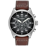 Citizen CA4210-24E Avion Eco-Drive Chronograph – Men’s Stainless Steel Black Dial Brown Leather Strap Vintage Pilot Watch