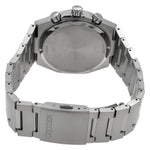 Pairing classic proportions with a distinctly modern style, meet the new Integrated Super Titanium™ series from Citizen. Featuring a 42.4mm silver-tone Super Titanium™ case paired with stylish stepped chronograph pushers and a stylized crown, the finely brushed and polished timepiece is secured to the wrist with a matching integrated bracelet. On the dial, a textured white-silver tone color is accented with an outer tachymetric scale and triple register configuration in black, with details in silver-tone and white put to use for the handset and applied indices. Features include running time, a split-second chronograph, 12/24 hour time, and date. Sustainably powered by any light with Eco-Drive technology and never needs a battery. Water resistant to 100 meters. Caliber B620.