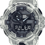 The digital-analog GA700SKE-7A of the new TRANSPARENT PACK Series timepieces are created using semi-transparent resin parts. Everything about this white-based model makes it the perfect choice as an attractive fashion item. Stopwatch, Shock resistant, 200m water resistant