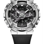 The stainless steel bezel of this analog-digital GM110 Series model have been forged, cut and polished to give it its distinctive design.The GM110 model has a silver bezel and dial for a metallic look. Shock Resistant, 200M Water Resistant, Magnetic Resistant.