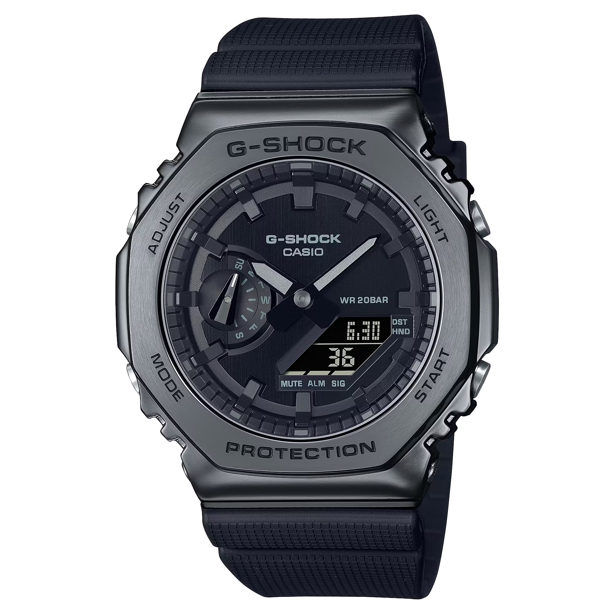 Go metal-clad in all black with a G-SHOCK that says strong, steely, and stylish.