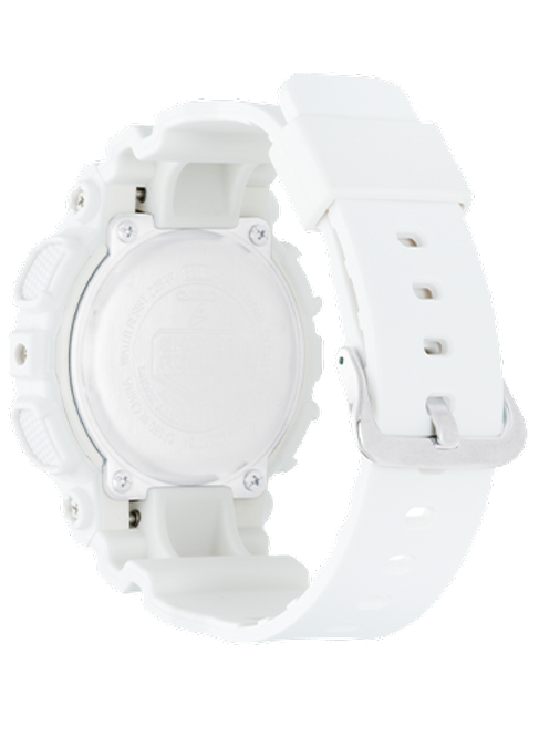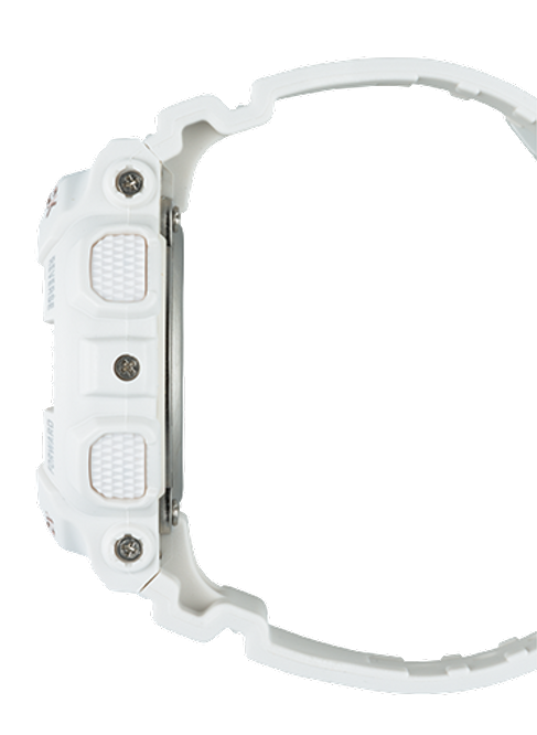 Part of the Metallic Face Series with analog and digital dial displays, metallic accents on the face and matte band in pastel shades. Equipped with standard G-SHOCK technology including 200M water resistance, shock resistance, magnetic resistance, auto LED Light with Afterglow, world time (48 cities + UTC), 5 daily alarms and 1 snooze, 1/1000th second stopwatch, countdown timer, and 12/24 hour formats - all in a 45.9mm case. 4 Daily Alarm and One Snooze Alarm, 1/100 second stopwatch (100 hr), 200M Water Resistant