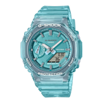Slip on a splash of clear metallic pleasure with the ever-popular analog-digital combination GA2100 in a slimmer, more compact profile.
