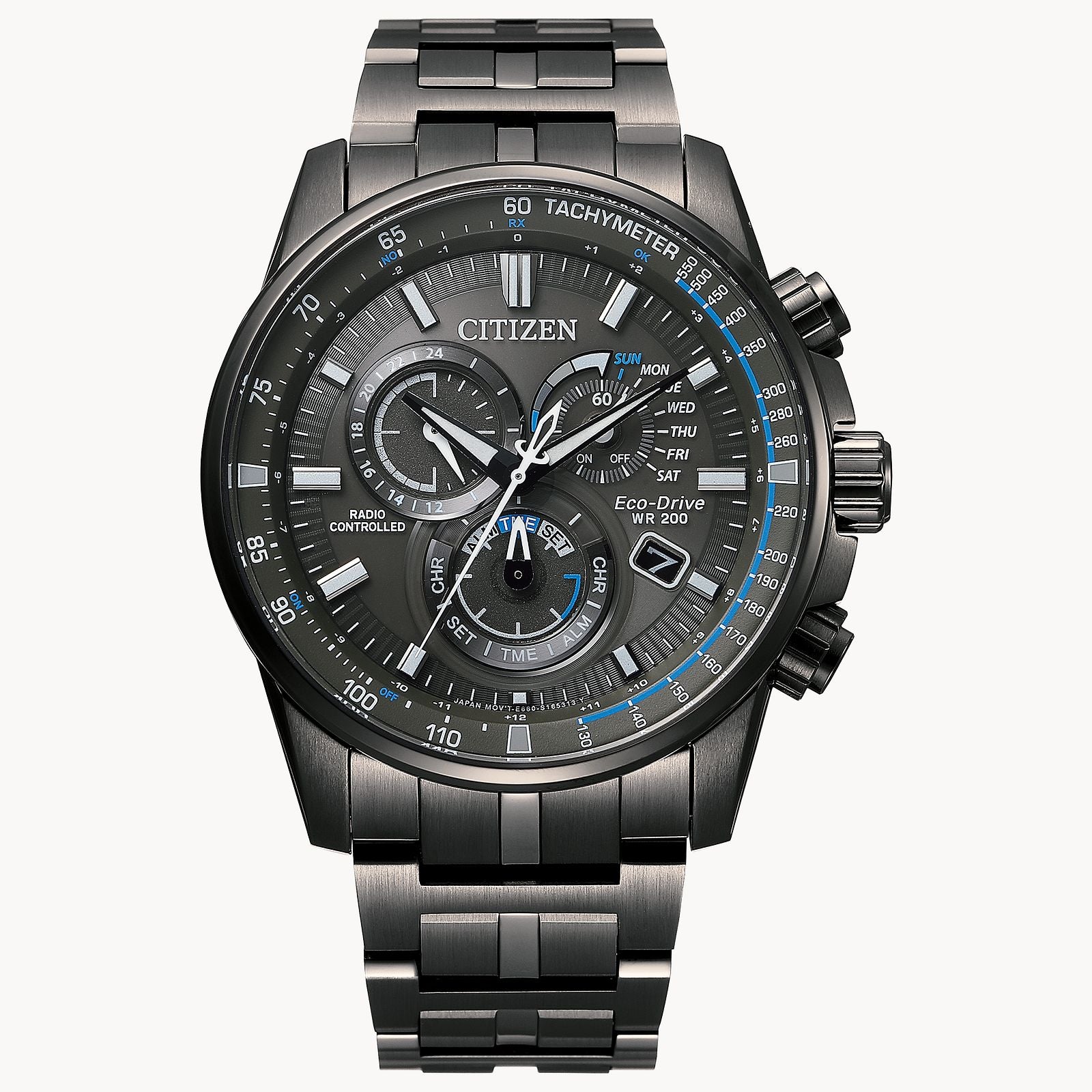 - Movement: Eco-Drive Quartz (solar-powered, radio-controlled atomic timekeeping)