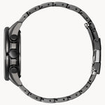 The best-selling PCAT watch from Citizen has been updated with our cutting edge E660 movement, without losing any of the features that made it stand out from the crowd originally. Some of those features include our patented Eco-Drive technology, so the watch will never run out of power or need a battery replaced, as well as a chronograph, perpetual calendar and power reserve indicator. The stainless steel band and dial are a solid black for a sleek, sophisticated look that won’t be out of place in the boardroom, at the beach, or anywhere in-between.