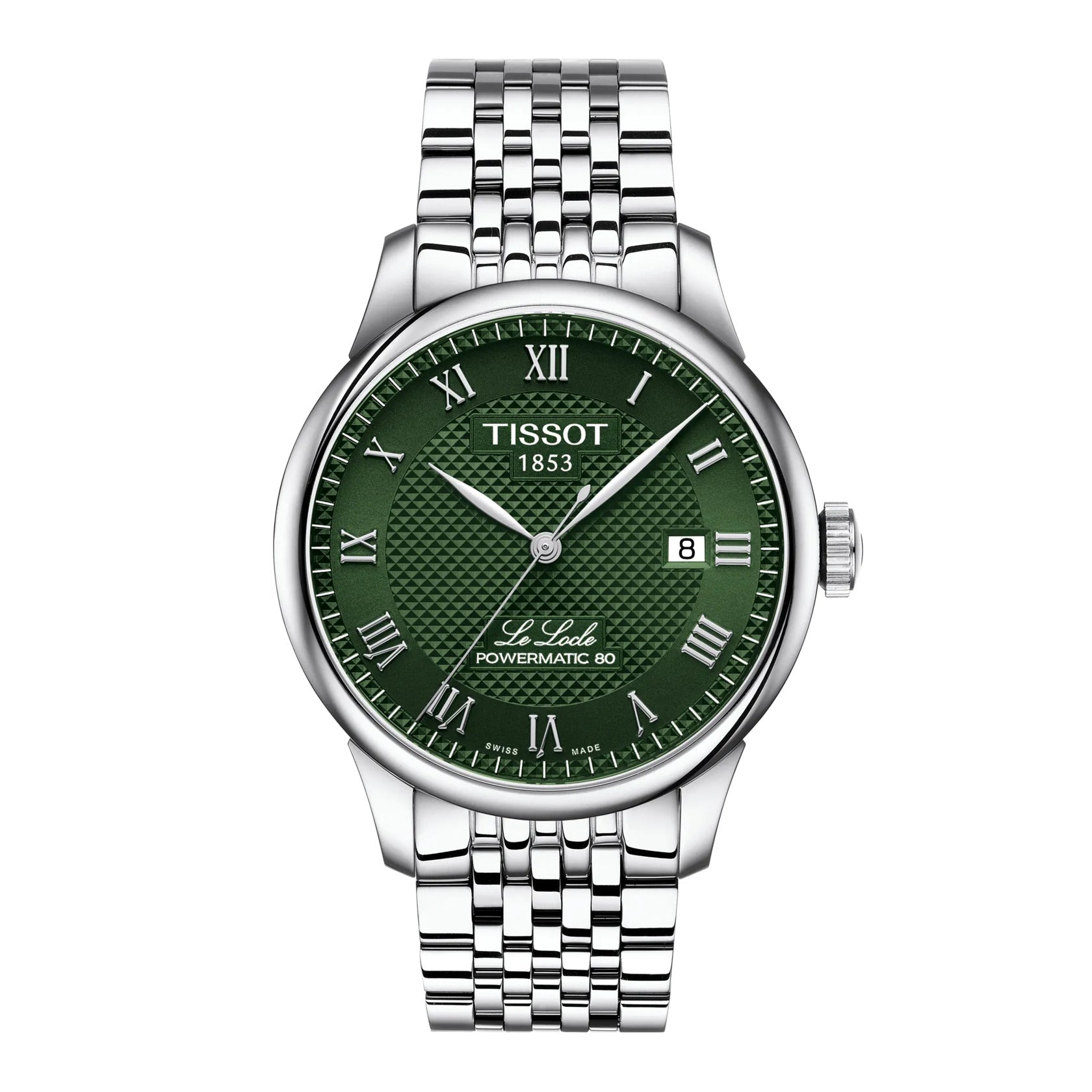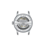 The Le Locle collection first debuted in 2003 to commemorate the 150th years of the brand. This timepiece is a piece of history, embodying the spirit of innovation that has defined Tissot for over a century. This model features a green dial and is equipped with interchangeable quick-release bracelets. All watches have the beautiful clous de Paris “guilloche” dial in the form of small pyramids a detail that really makes the difference. The interplay of polished and brushed finishes on the links creates a captivating visual rhythm, catching the light with every movement. This watch embodies the charm of Swiss heritage, with the name "Le Locle," inscribed in italics on the face, adds a sophisticated touch, inviting you to celebrate your roots. The latest model features cutting-edge Nivachron Spring Balance technology, which significantly mitigates the effects of magnetic fields while also being resistant to shocks, aging, and temperature variations. This model includes a date function and a see-through case back that reveals the mesmerizing mechanics at work.