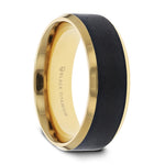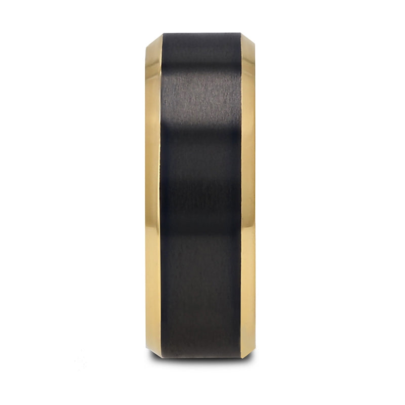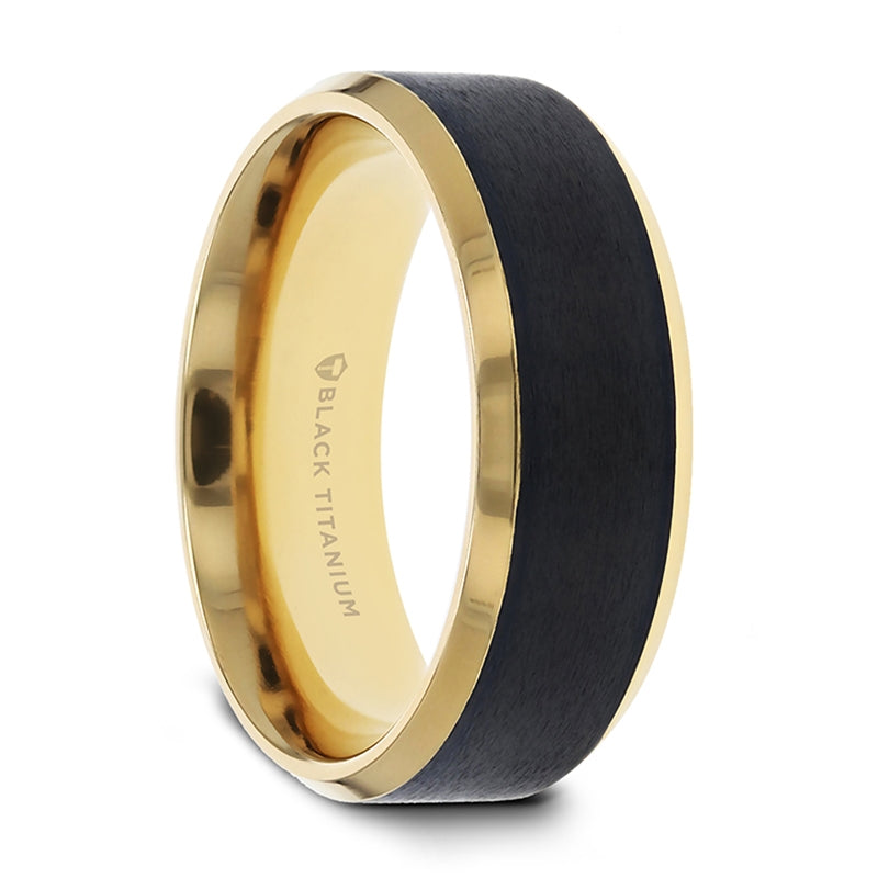Gold Plated Black Titanium Polished Beveled Ring with Brushed Center