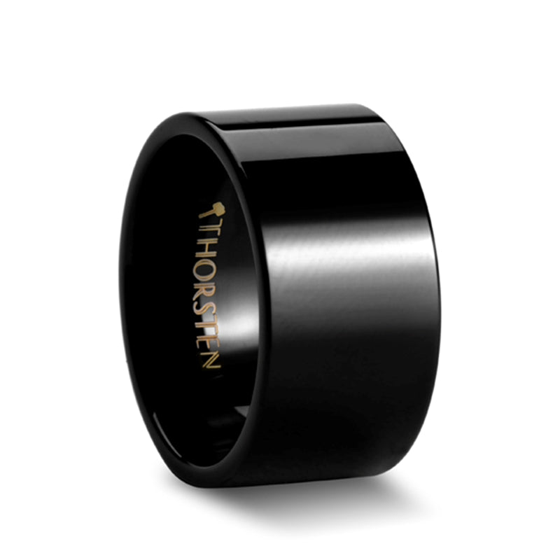 Pipe Cut Polished Black Tungsten Carbide Ring