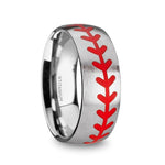 Titanium Brushed Finish Ring with Red Baseball Stitching Pattern