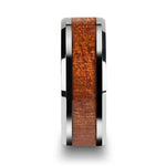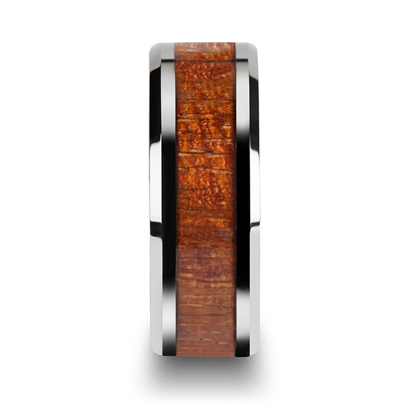 Tungsten Band with Polished Bevels and Exotic Mahogany Hard Wood Inlay