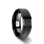 Flat Black Tungsten Ring with Brushed Raised Center & Polished Edges