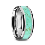 Men’s Polished Tungsten Wedding Band with Light Blue Turquoise Stone Inlay & Polished Beveled Edges. 8mm width