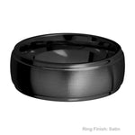 8 mm wide domed with a stepped down edge Zirconium band.
