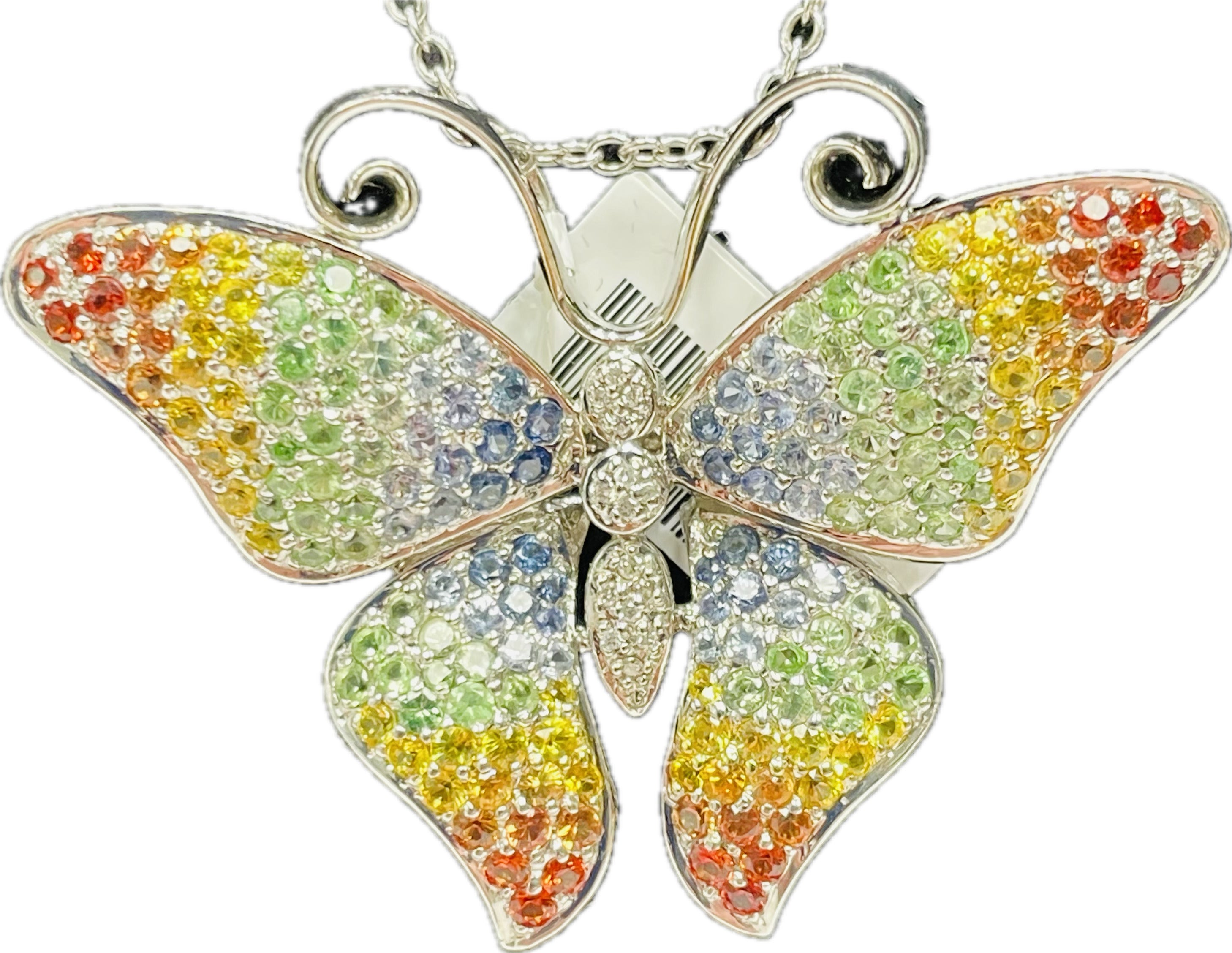 Vintage 18K White Gold with Rainbow Sapphire Vintage Butterfly Pin & Pendant