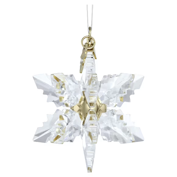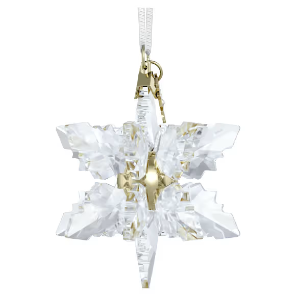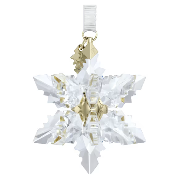 The magic of winter is captured in this year’s Swarovski Annual Edition 3D Ornament. Celebrating the unique beauty of snowflakes, the clear 3D design is a striking example of Swarovski savoir-faire, featuring 340 facets and 18 individual peaks. Suspended from a white grosgrain ribbon, the ornament is completed with a glossy champagne gold-tone center and a tag engraved with “2024.” Ideal for hanging in a window or from your tree, it will cast a wondrous light over any holiday décor scene. Decoration object. Not a toy. Not suitable for children under 15.