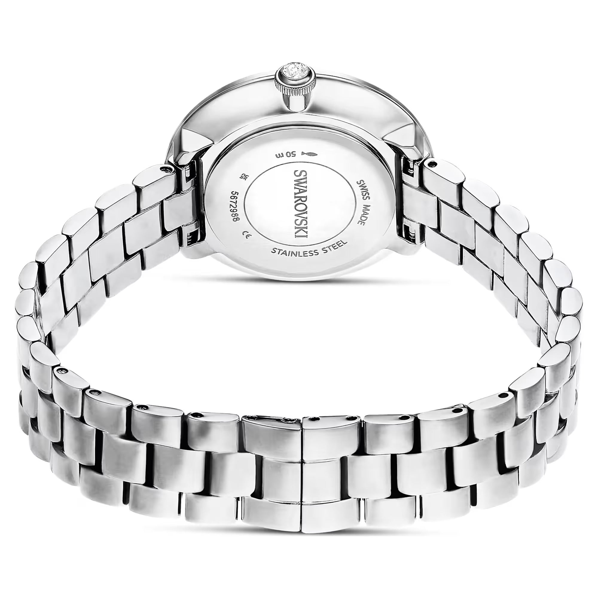 Blending Swarovski radiance with contemporary design, this Certa watch is the perfect fusion of artistry and functionality. The 30mm stainless steel case features a bezel set with a shimmering pavé of 42 crystals, while on the radiant sunray dial, there is an elegant swan logo at 12 o’clock and three index markers crafted from individual baguette-cut crystals. A single crystal is set within the crown, and the three-link metal bracelet provides a comfortable fit around the wrist. This Swiss made watch is water resistant to 50 meters and is a timeless choice to complement your everyday style.