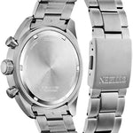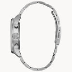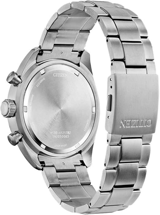 From the Super Titanium™ collection, the new Garrison timepiece has a sporty appeal that takes you from the workday to weekend in style. The distinctive design features a silver-tone Super Titanium™ case and bracelet that are 40% lighter and five times harder than stainless steel and a blue dial with a one-second chronograph that measures up to 60 minutes, a 12/24 time and date, luminous hands and markers and an anti-reflective sapphire crystal. This must-have men’s watch from Citizen also has a fold over clasp with push buttons and is water resistant to 100 meters. Featuring our sustainably light-powered Eco-Drive technology that never needs a battery. Caliber number H500.