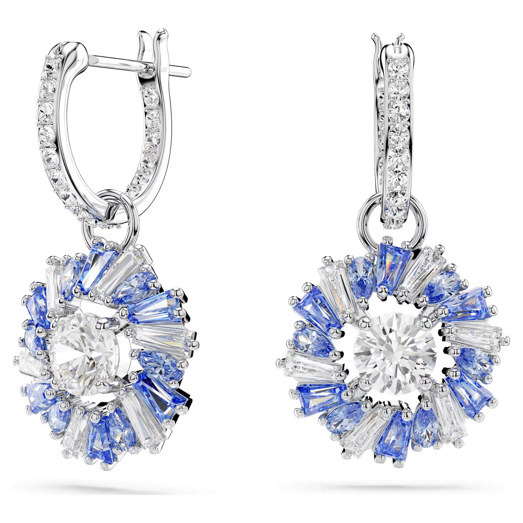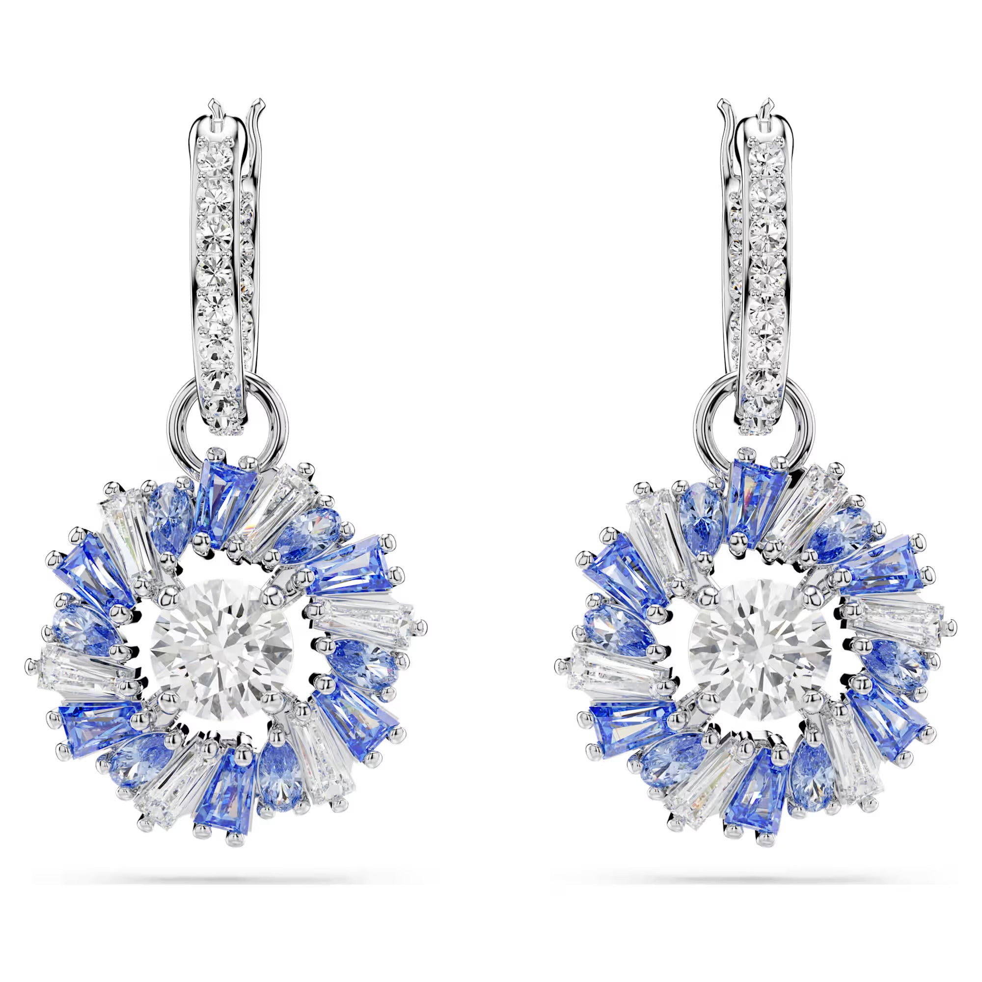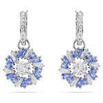 With their refreshing blend of colors, these energizing Idyllia earrings are an exquisite display of Swarovski savoir-faire. Each rhodium-plated piece is attached to a mini hoop adorned with clear crystals, and features a vibrant flower, precisely crafted from blue and clear Swarovski Zirconia. A fixed Swarovski Zirconia at the center catches the light from every angle. Wear these earrings to instantly uplift your style.