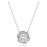 Catching the light from every angle, this vibrant Idyllia pendant has been crafted with exquisite savoir-faire. Worn on a delicate chain, the rhodium-plated design features a bold flower motif, precisely crafted from refreshing blue and clear Swarovski Zirconia, and with a playful dancing stone at the center. Made for maximum brilliance and depth, it will be the shining star of any outfit.