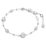 With its dynamic strand of metal droplets, this Imber bracelet will give your wrist a distinctive shimmer. The rhodium plated design is accented with dazzling round-cut crystals in a puffy bezel setting. Completed with a lobster closure and extra elongation, the bracelet can be worn as a single piece or paired with a matching set of studs from the same family.