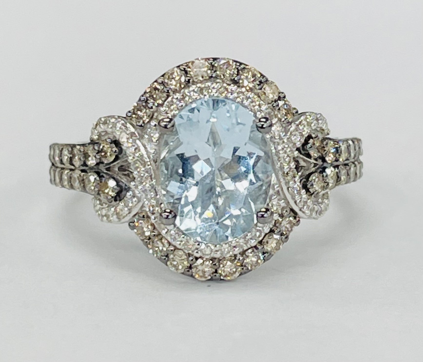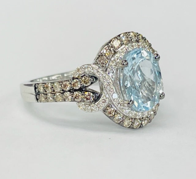 LeVian Double Halo Auqumarine And Diamond Ring