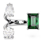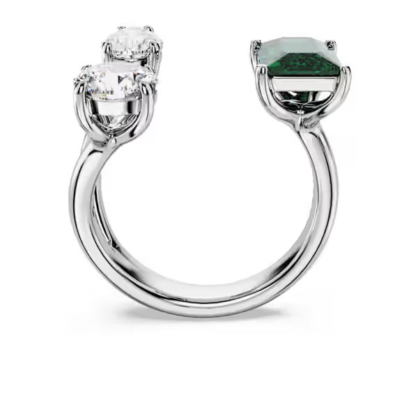 Embrace the spirit of refinement with this Mesmera ring. The jewelry is silver-tone finished and features a wondrous mix of stone cuts, including two clear and one green Swarovski Zirconias. A hypnotic statement piece that makes a striking gift for a loved one.