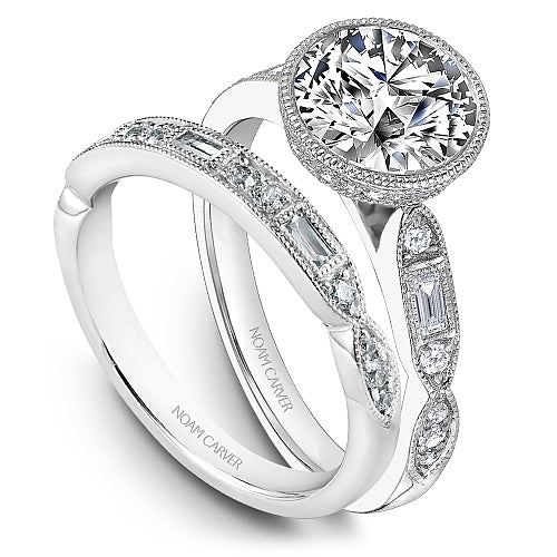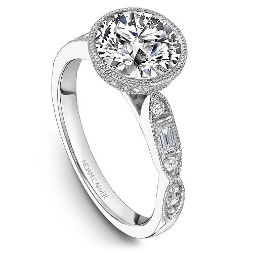 Noam Carver B355-01A 14K White Gold Round Diamond Engagement Ring with Accented Band