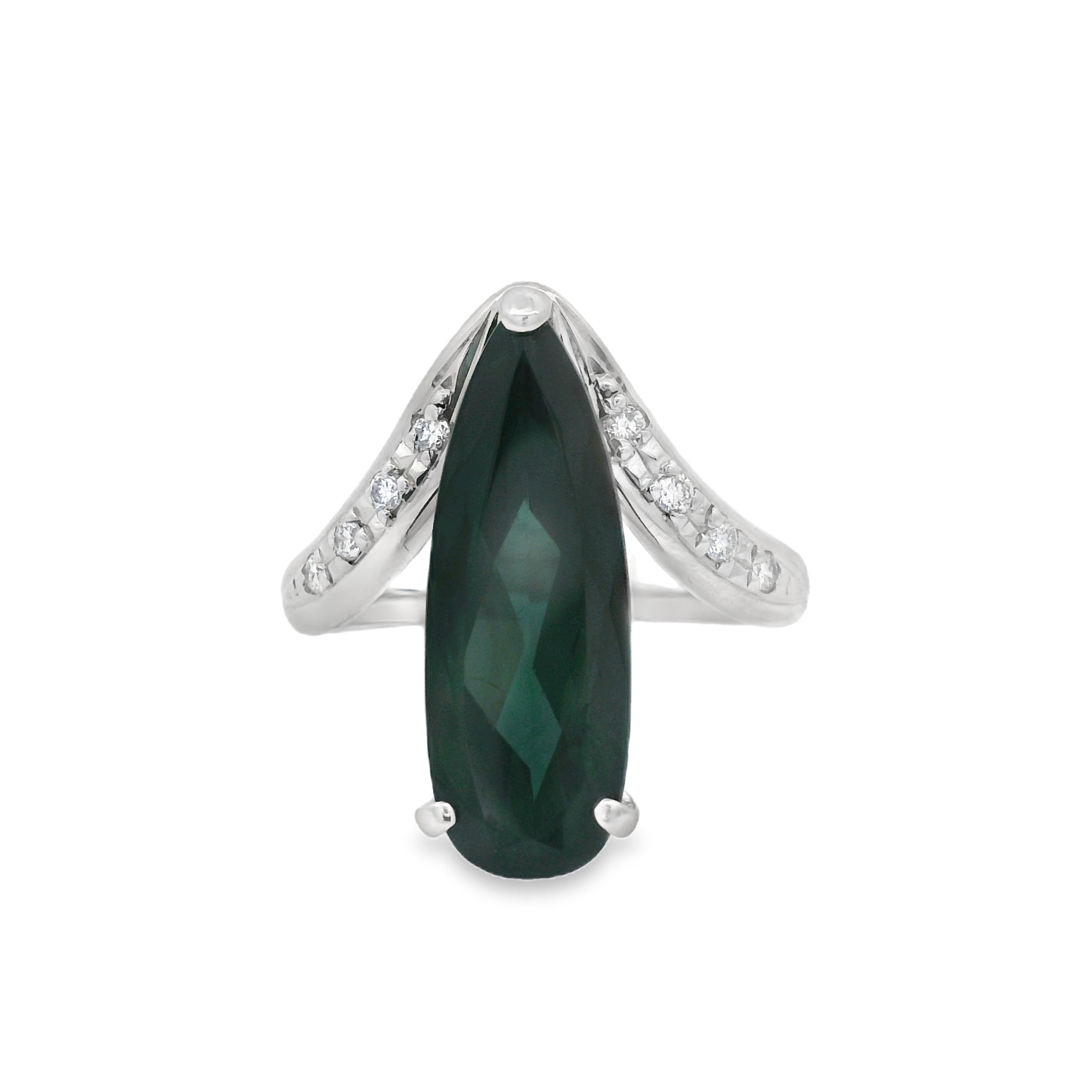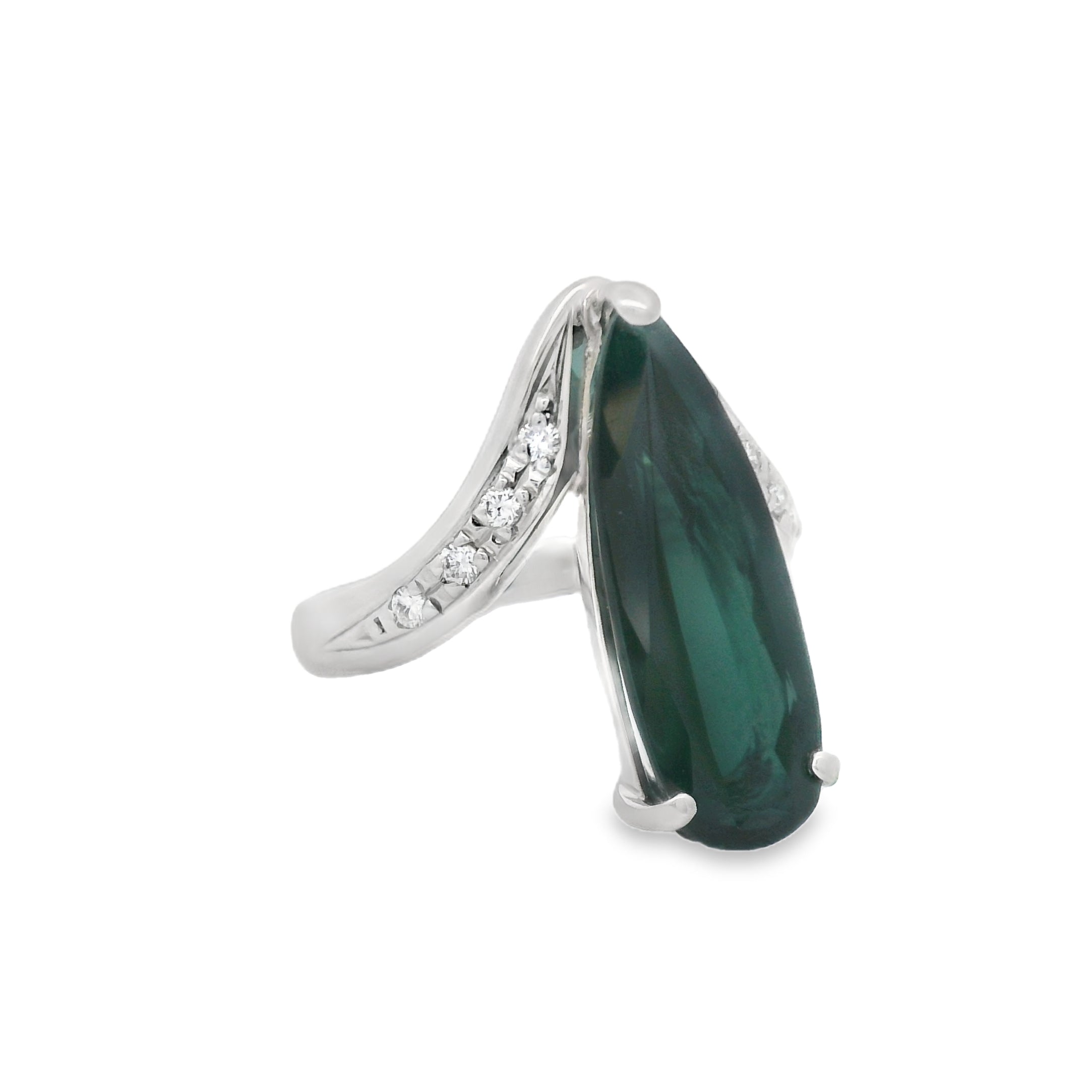 Platinum 5CT Pear Facated Indicolite Tourmaline And Diamond Fashion Ring