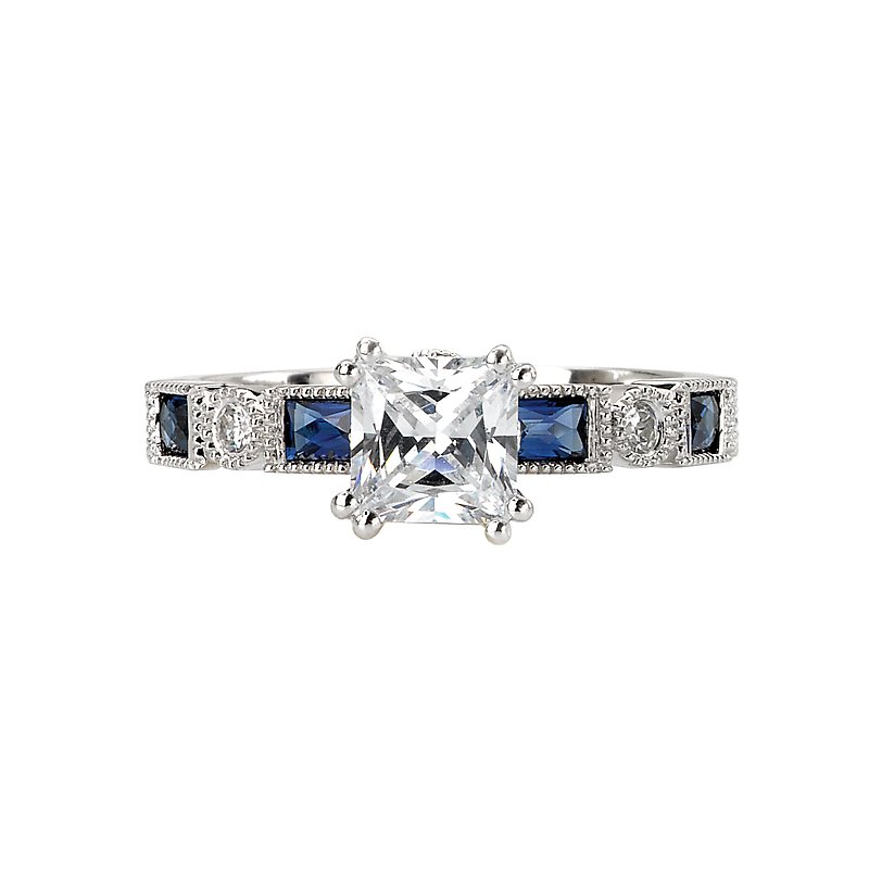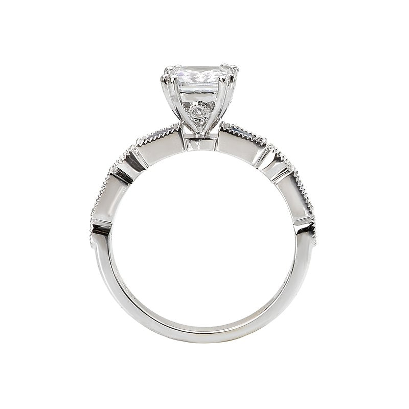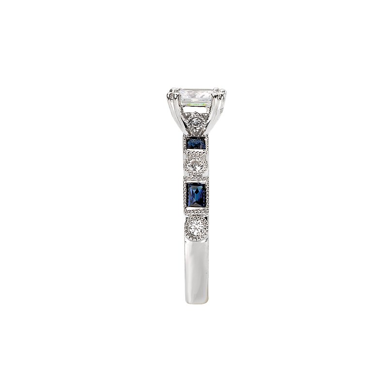 This vintage inspired semi-mount is the ring for that vintage lover in your life. Accenting this ring is breataking sapphires and diamonds to add contrast and a pop of color. Millgrain is added to the edges to give it that true vintage feel.