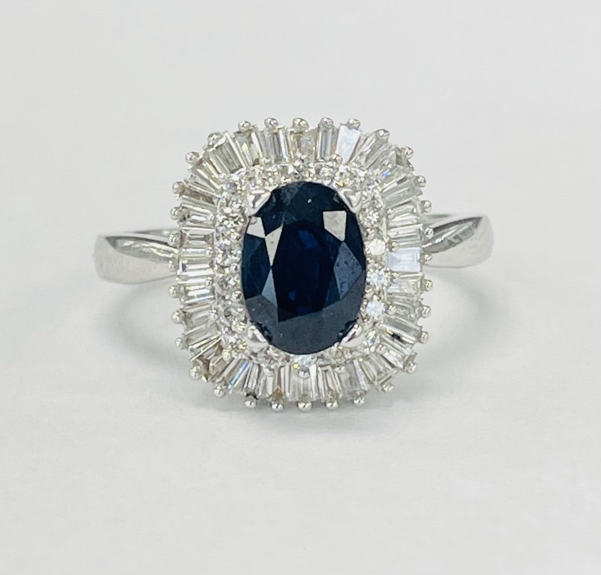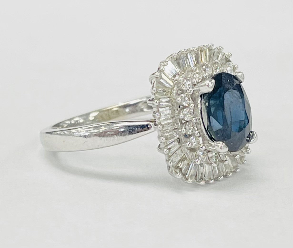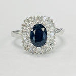 Spectacular Estate Deep Blue Sappire And Diamond Balerina Ring
