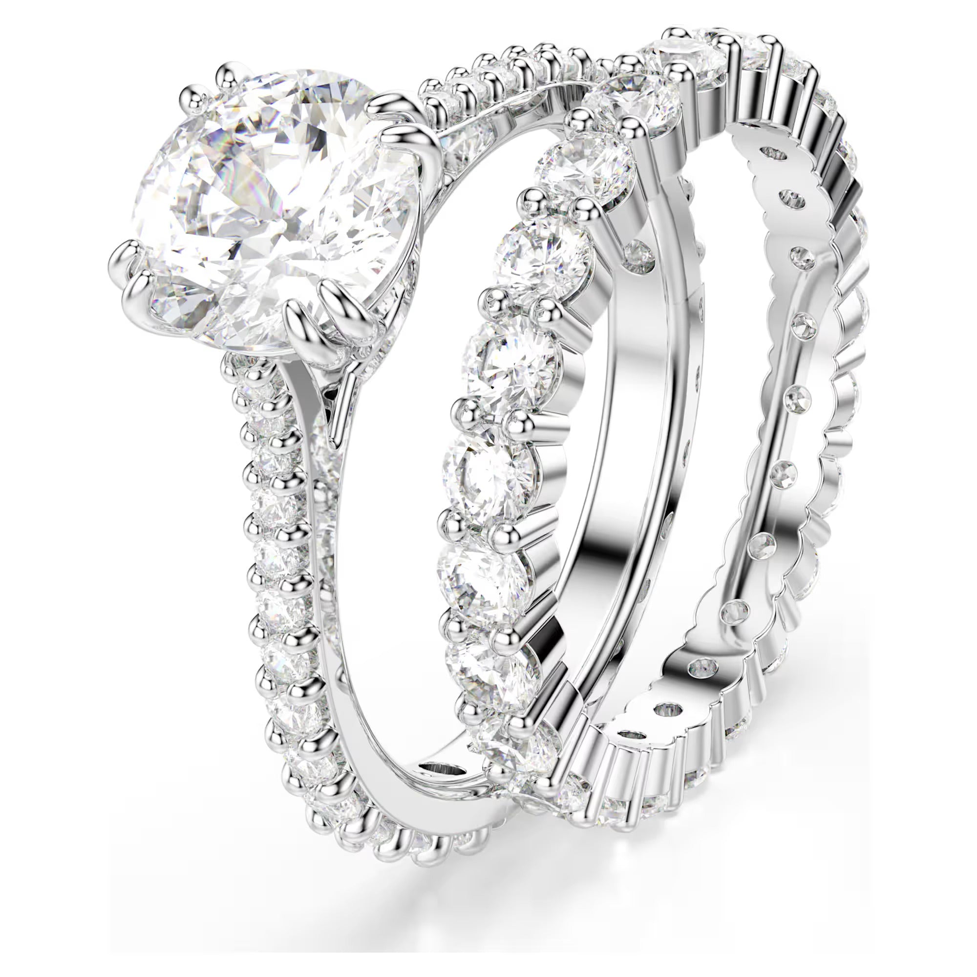 Elevate everyday looks with this rhodium-plated ring set from the Stilla family. Each piece is inspired by fine jewelry techniques: one ring dazzles with a clear princess-cut stone and pavé embellishment on the gallery, while the other features a row of shimmering stones around the band. A beautiful gift idea for a loved one – or yourself.
