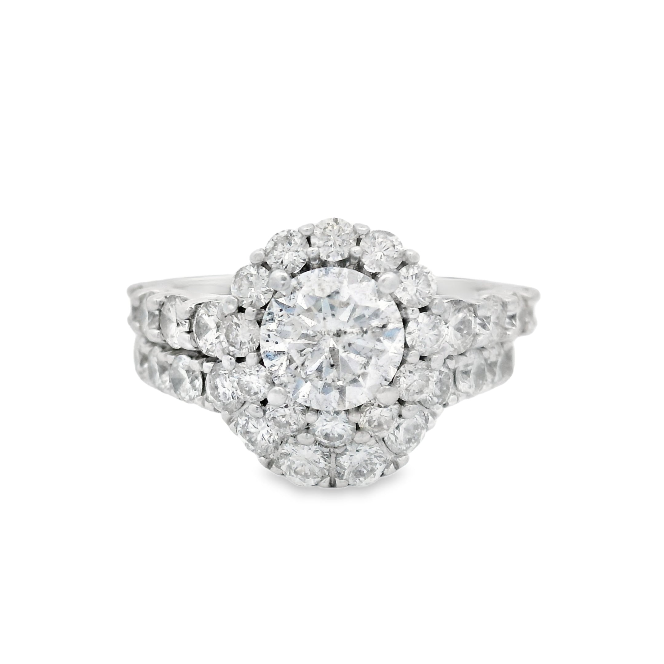 Stunning 2 3/4CTW Certified Diamond Halo Wedding Set