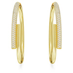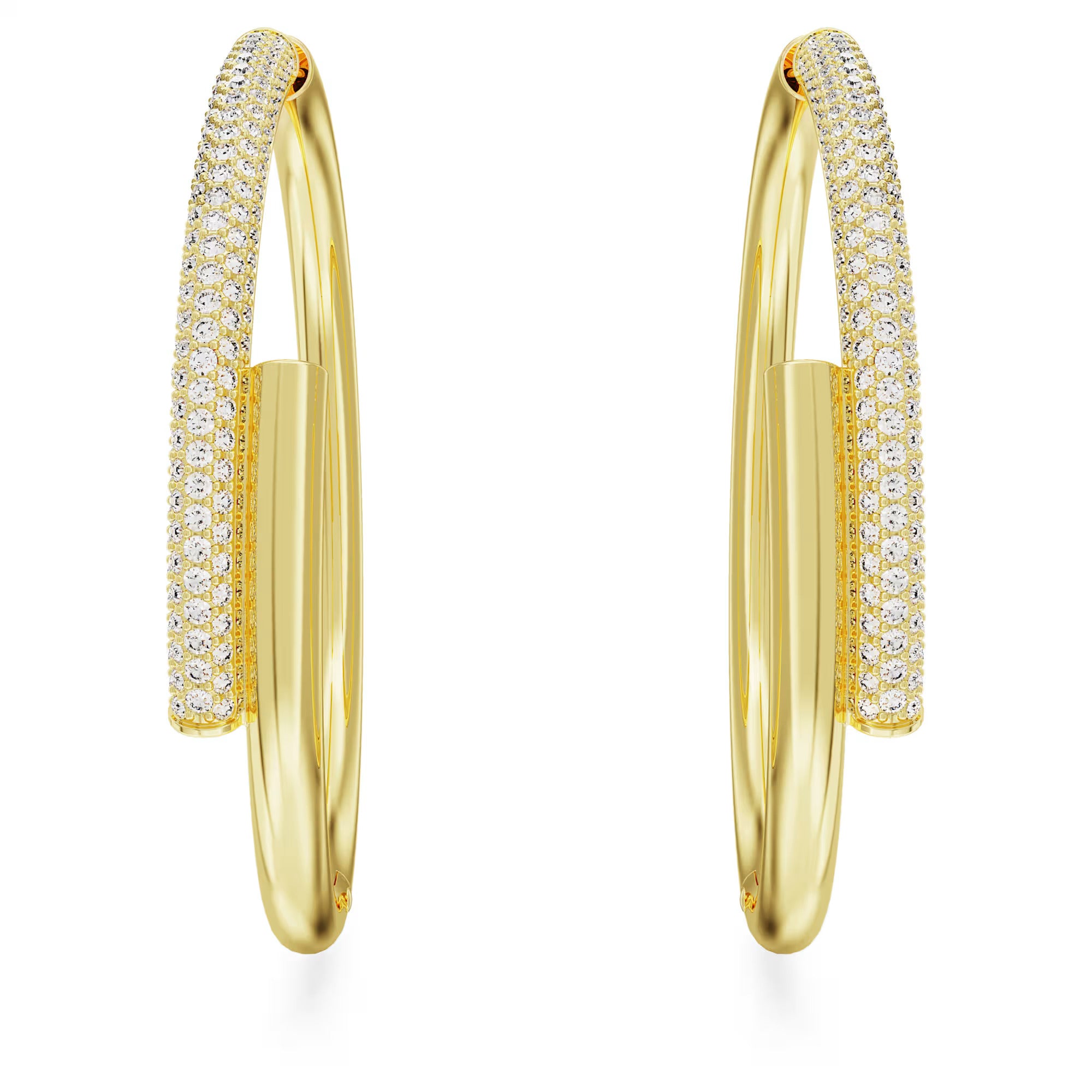 These radiant Dextera earrings take the classic hoop style to new levels of luxury. Crafted with a crossover design, each tubular piece delivers a beautiful contemporary style, featuring a gold-tone plated hoop that is half embellished with all-over clear pavé. Enhance the look by pairing these pierced earrings with a matching Dextera bracelet.