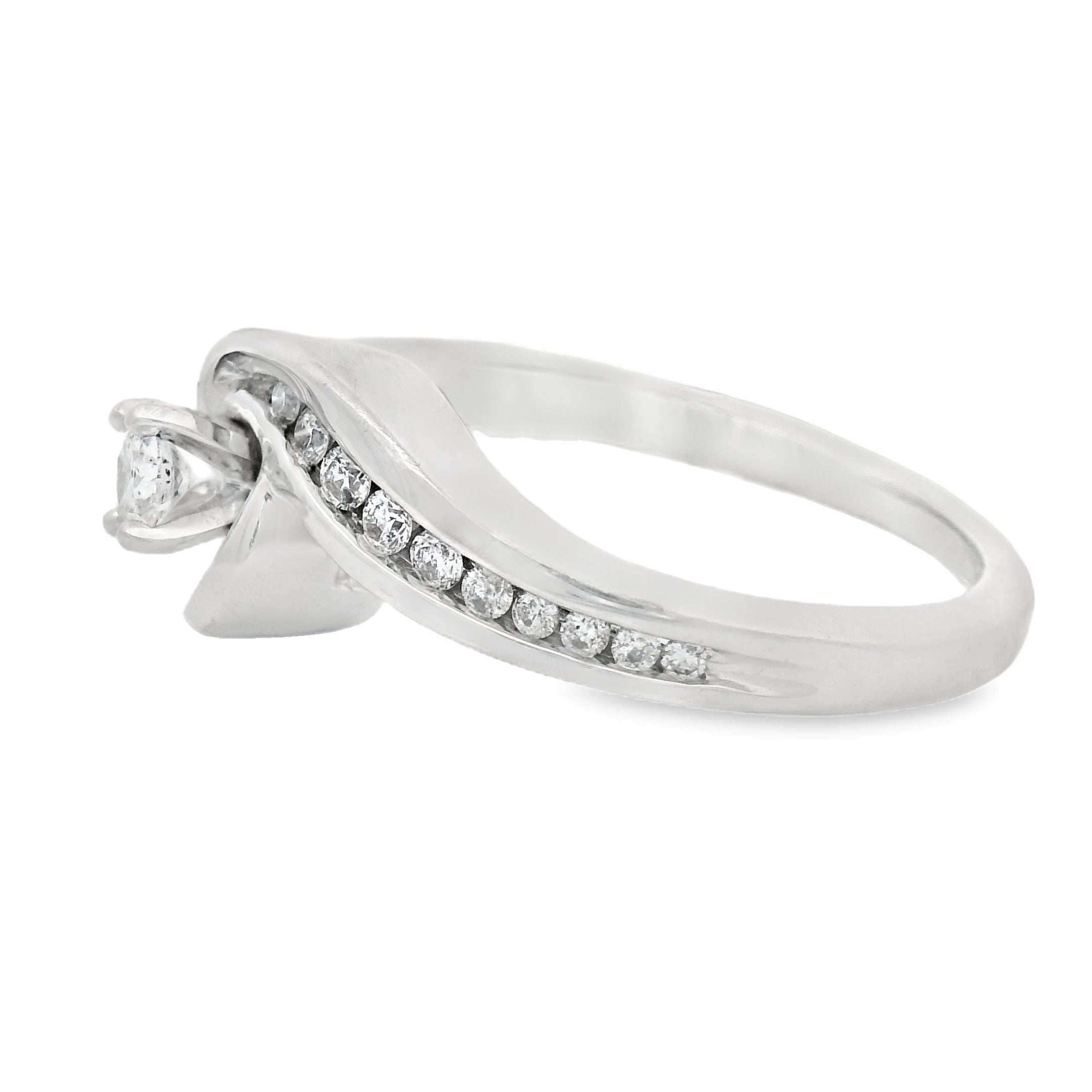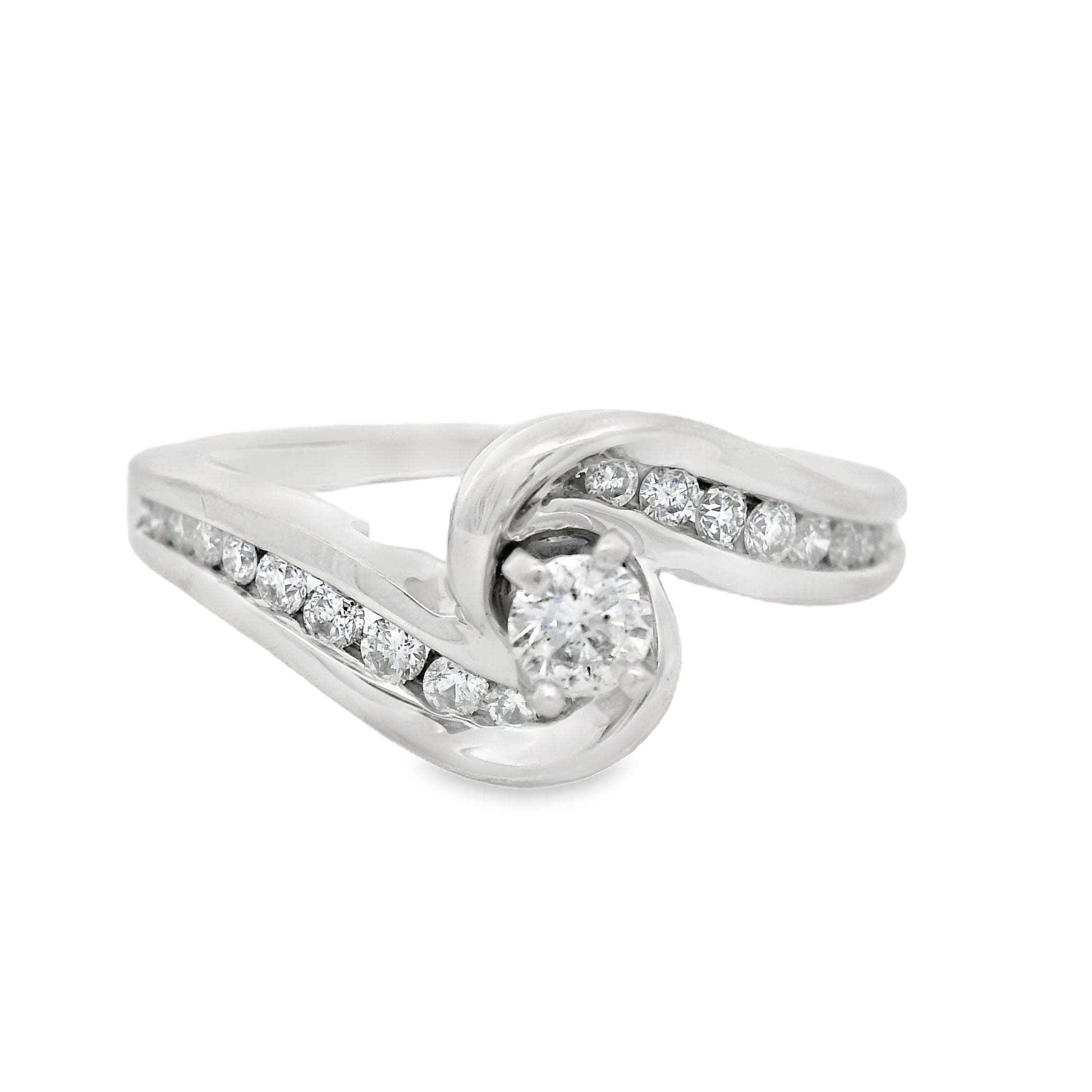 This classy twist swirl diamond engagement ring is made out of luxirous white gold. With a modern trendy style and plenty of diamonds for sparkle, this is a great choice for that special someone in your life.