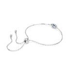 Inspired by the shimmering night sky, this radiant Una Angelic bracelet is crafted to catch the light. The rhodium plated chain features a central Swarovski Zirconia presented in dazzling blue and framed by a pavé of clear round crystals. The pulling mechanism can be adjusted for a perfect fit. Style with any outfit for an injection of shine.