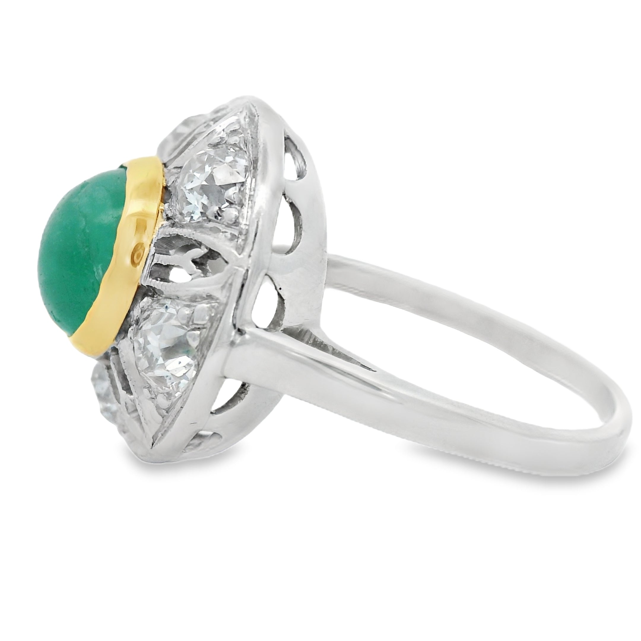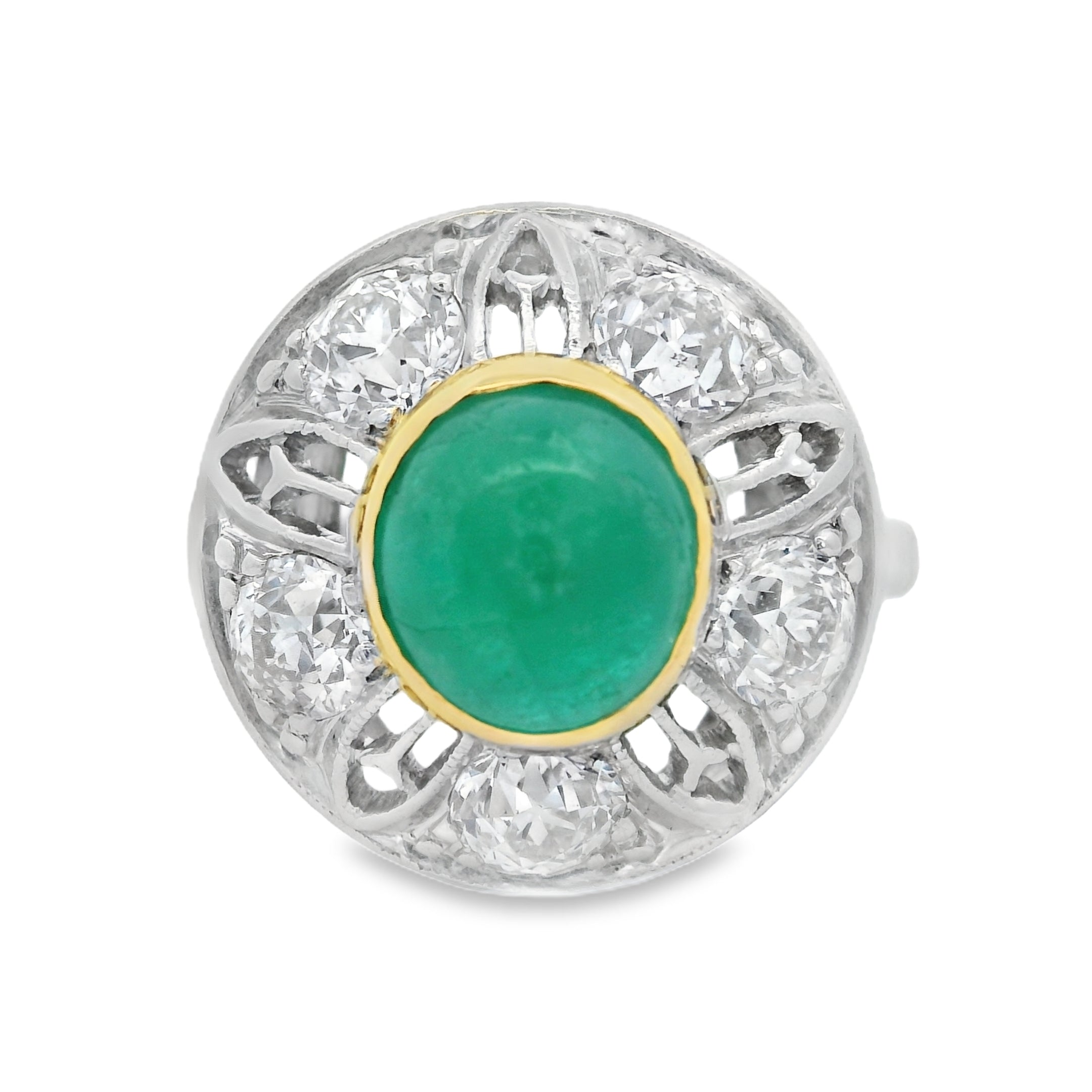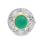 Vintage Platinum Cab Emerald And European Cut Diamonds Ring