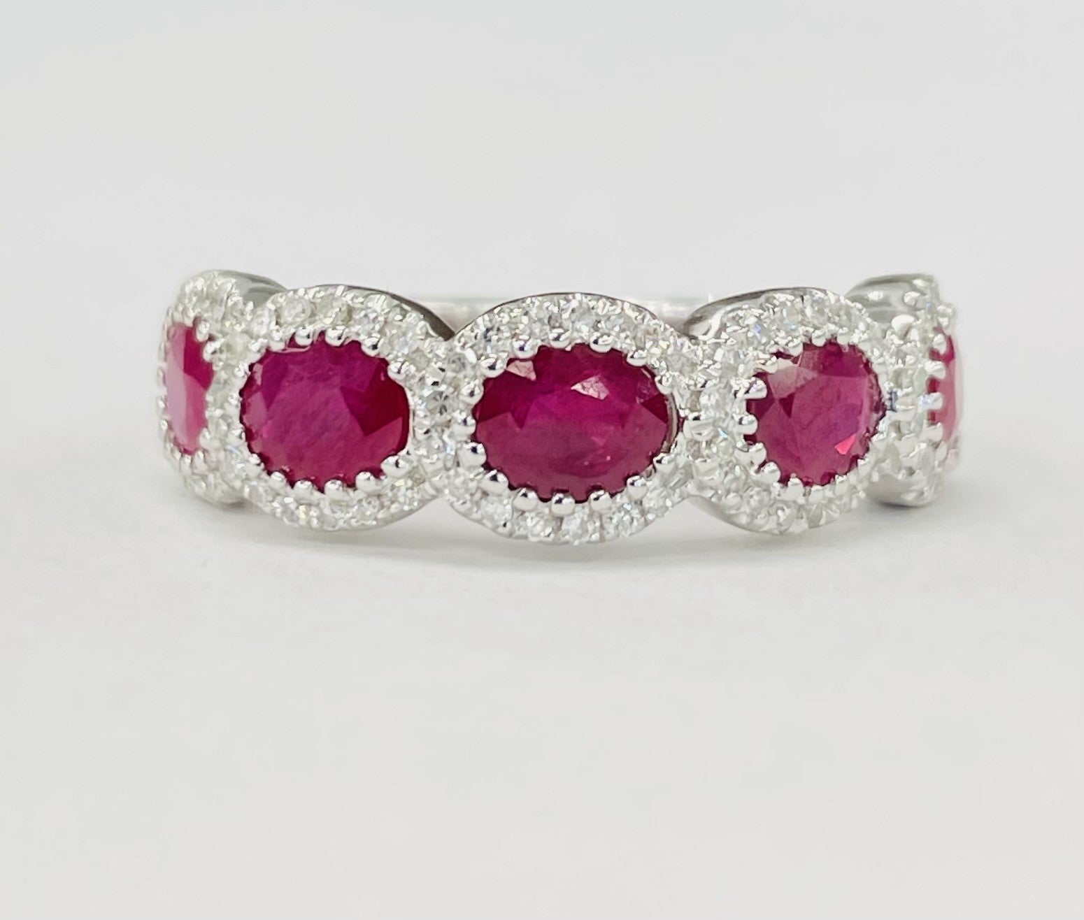 White Gold 1 1/2CTW Ruby Halo Diamond Band