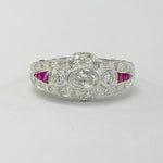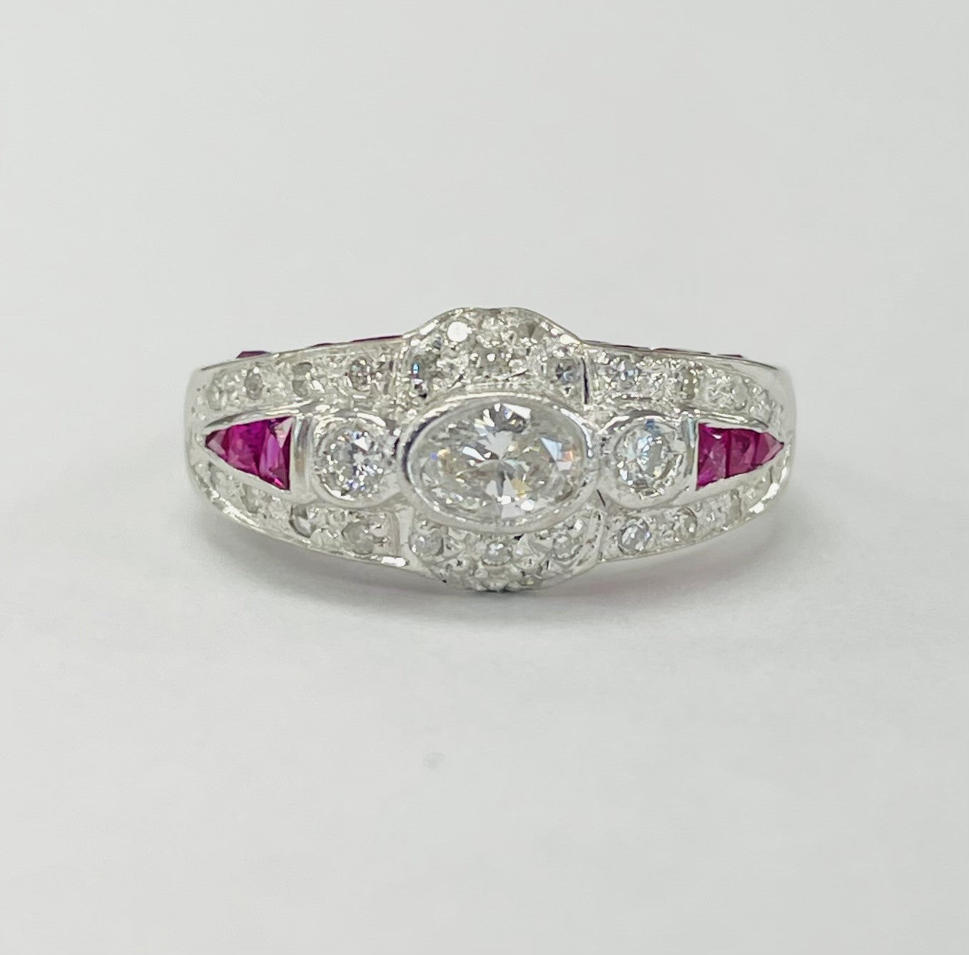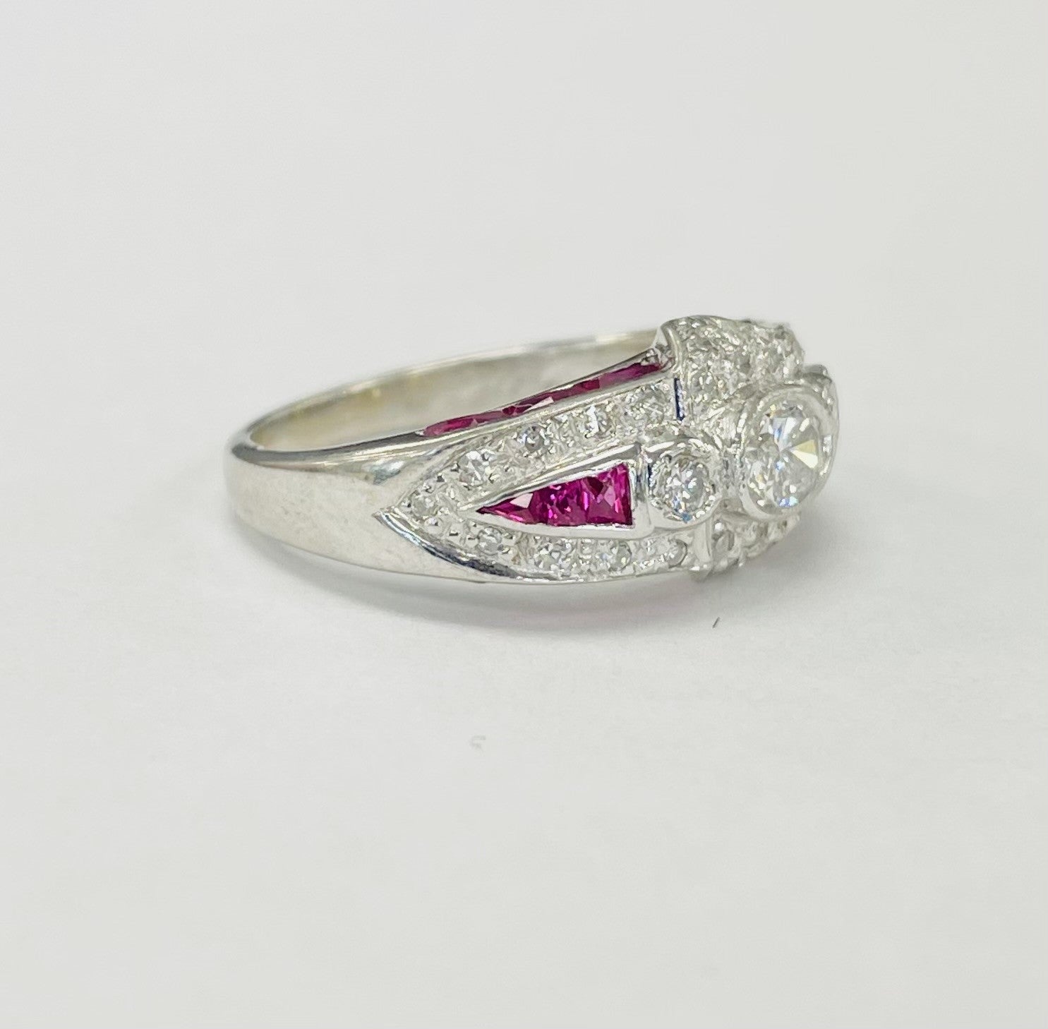 White Gold Custom Cut Rubies And Diamond Estate Ring