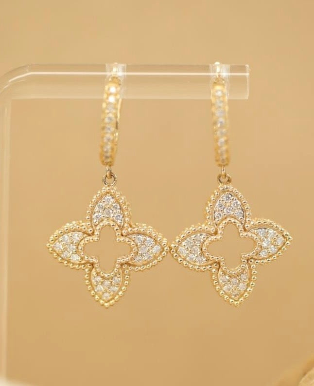 - Design: Dangle motif earrings with diamond accents